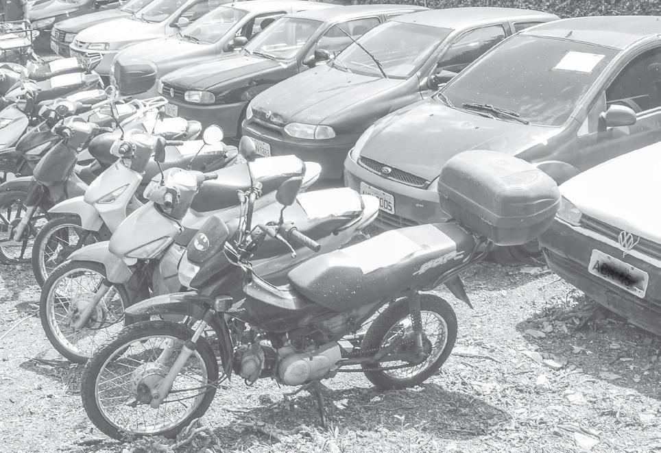 Além dos automóveis e motocicletas em condições de circulação, serão leiloados 18 veículos em estado de sucata aproveitável e 55 veículos em condição de su-