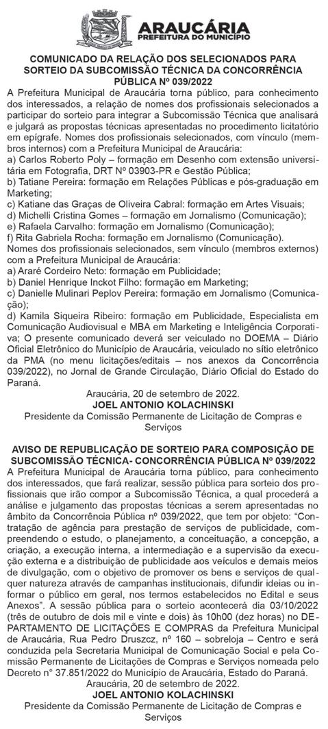 Curitiba, quarta-feira, 21 de Setembro de 2022 - edição 3.963