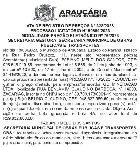 O leilão do Lote 1 da nova concessão rodoviária do Paraná será nesta sexta-feira (25). A disputa envolve 473 quilômetros de rodovias federais e estaduais entre Curitiba, Região Metropolitana, Centro-Sul e Campos Gerais do Paraná. A empresa ou consórcio vencedor deverá investir pelo menos R$ 7,9 bilhões em obras de melhorias e manutenção em trechos das rodovias BR-277, BR-373, BR-376, BR-476, PR-418, PR423 e PR-427. O contrato será de 30 anos.