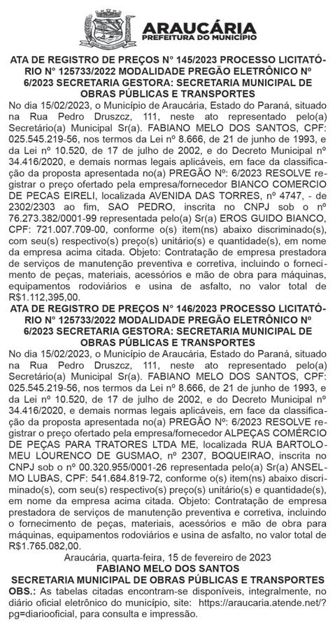 A liberação dos R$ 2,6 milhões corresponde a a primeira parcela do convênio, que totaliza R$ 3,2 milhões. O repasse foi autorizado após a etapa de licitação, realizada pelo DER-PR. n