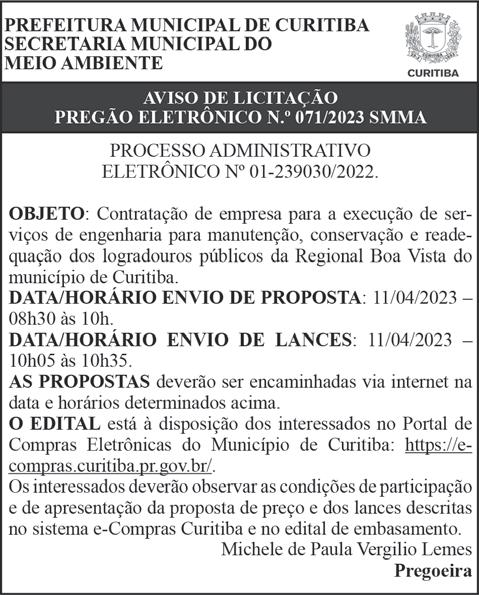 Por proposição do deputado ney Leprevost (PSD), na próxima quinta-feira (23), a partir das 18 horas, a assembleia Legislativa do Paraná realizará uma sessão solene em homenagem ao aniversário de 330 anos de Curitiba, comemorado no dia 29 de março. na oportunidade serão homenageadas pessoas dos mais diversos segmentos que contribuem com a cidade.