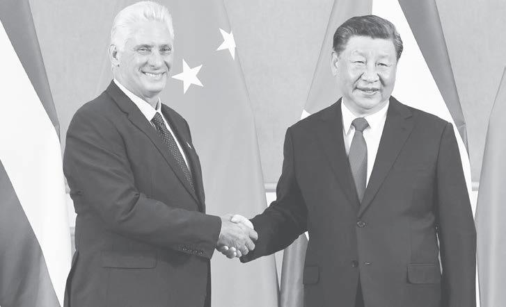 O presidente de Cuba, Miguel Díaz-Canel Bermúdez, reuniuse ontem com o seu homólogo chinês, Xi Jinping, na África do Sul, durante a Cúpula do Brics, bloco econômico formado por Brasil, Rússia, Índia, China e África do Sul. n