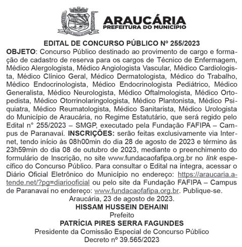 A Prefeitura de São José dos Pinhais, por meio da Secretaria Municipal de Cultura (SEMUC), informa que as inscrições para o Concurso Miss São José dos Pinhais foram prorrogadas até o dia 28 de agosto. As candidatas devem enviar os documentos abaixo para o e-mail miss.saojosedospinhais@gmail.com e realizar sua inscrição pelo site da prefeitura.