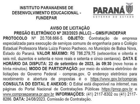 De acordo com o Edital nº 255/2023, publicado no Diário Oficial ontem (24), a seleção será por meio de prova objetiva eliminatória e classificatória. As inscrições terão início no dia 28 de agosto poderão ser realizadas até o dia 08 de outubro no site da Fundação FAFIPA.