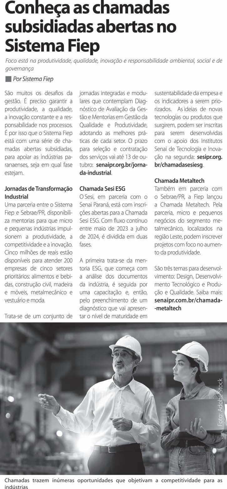 A ação será promovida pelo Sindicato da Indústria da Construção no Estado do Paraná (Sinduscon-PR) e pela Federação das Indústrias do Estado do Paraná (Fiep-PR), com o apoio da Prefeitura de Curitiba, da Fundação de Ação Social (FAS), da Urbanização de Curitiba (Urbs) e da Agência de Assuntos Metropolitanos do Paraná (Amep). n