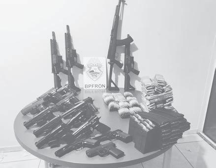 O Batalhão de Polícia de Fronteira (BPFron) da Polícia Militar do Paraná apreendeu ontem três fuzis Colt, de calibre 5.56, um fuzil 7.62, 16 pistolas de diversas marcas, além de carregadores e quase quatro mil munições de fuzil 5.56, em São Miguel do Iguaçu, na região Oeste. A ação, que faz parte das ações contínuas de combate ao crime na fronteira, também resultou na