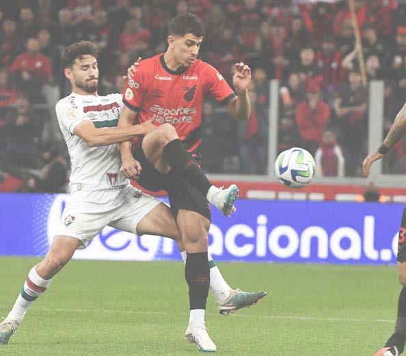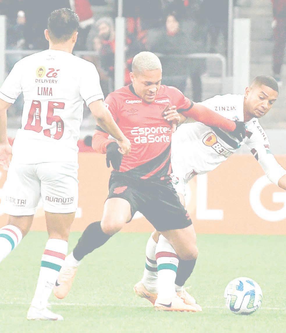 tropeçar em casa Mailson Santana/Fluminense FC Em duelo direto pelo G4 do Brasileirão, o Athletico chegou a levar uma virada do Fluminense, em plena Baixada, mas Vitor Roque marcou no fim e valeu o empate. (Página 6)