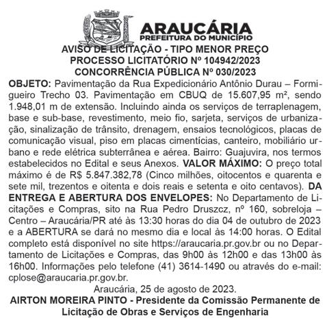 A Prefeitura, responsável pela manutenção e gestão do novo Terminal Metropolitano de Piraquara, retificou o edital de licitação para ocupação e exploração das salas comerciais disponíveis dentro do terminal. De acordo com divulgação da Agência de Assuntos Metropolitanos do Paraná (Amep) a data da realização da licitação passou para 9h do dia 4 de setembro. Os interessados em participar da licitação devem apresentar a documentação