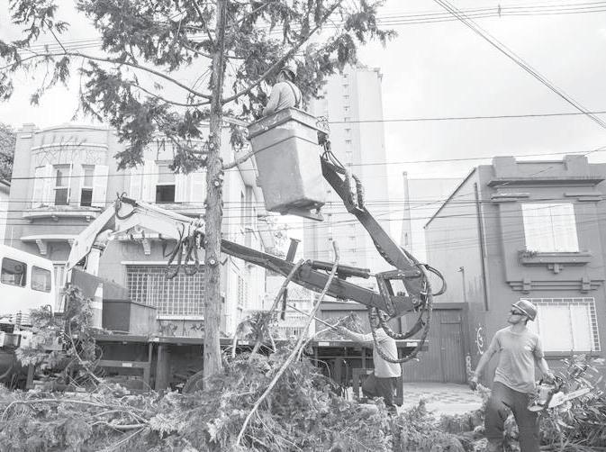 está em andamento pe las equipes da Secreta ria Municipal do Meio Ambiente (Arborização e Limpeza Pública). A prio ridade é a desobstrução das vias afetadas.