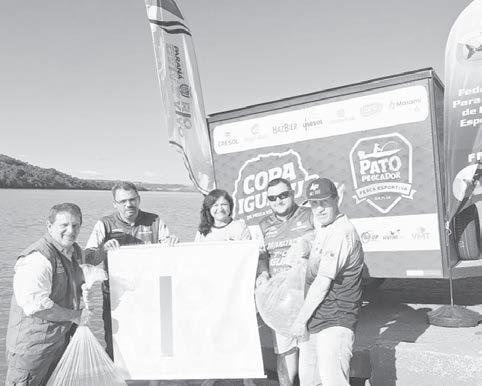 Pato Pescador no mu nicípio de Cruzeiro do Iguaçu. Os participantes também fizeram coleta de lixo das águas e distri buíram mudas frutíferas nativas para a comuni dade. n