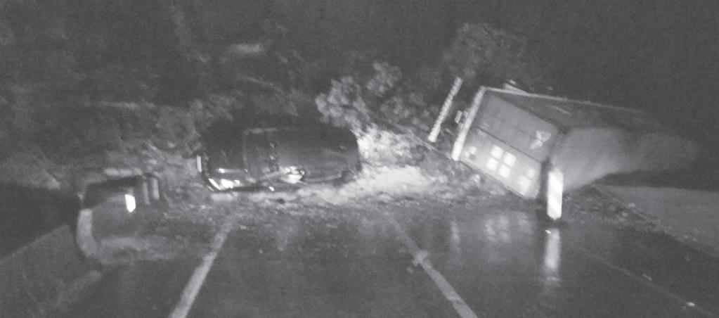 No começo da noite de ontem, ocorreu interdição total na BR-376, devido à queda de barreira no km 669. o deslizamento de terras atingiu veículos e impediu a continuidade do trânsito em direção a Santa Catarina. (Página 4)