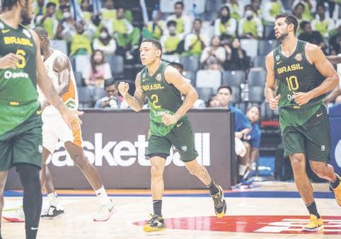 46. No terceiro quarto, o brasileiro sentiu dores no joelho e deixou a quadra. Na reta final da partida, retornou e somou 24 pontos com 12 assistências. Vindo do banco, Tim Soares foi outro destaque do Brasil ao marcar 15 pontos. Do lado da Costa do Marfim, o pivô Cédric Bah foi quem mais causou problemas para a defesa brasileira, com 13 pontos marcados e 13 rebotes.n
