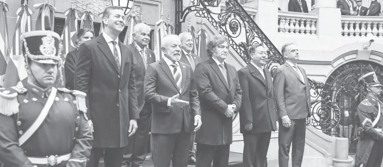 presidente Lula ontem, durante a 66ª Cúpula do Mercosul, em Buenos Aires, na Argentina, quando recebeu a coordenação do bloco sul-americano do presidente argentino, Javier Milei. O encontro reúne os líderes dos países-membros Argentina, Brasil, Paraguai e Uruguai, além da Bolívia, que está em processo de adesão, e países associados, para discutir temas prioritários do bloco. A presidência brasileira também buscará o fortalecimento da Tarifa Externa Comum (TEC), a incorporação dos setores automotivo e açucareiro ao regime comercial do bloco, além do fortalecimento dos mecanismos de financiamento de infraestrutura e desenvolvimento regional. n