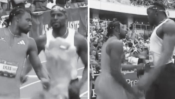 O boxe o MMA são esportes em que a encarada faz parte do show. No dia anterior, na hora da pesagem, os concorrentes de cada luta costumam chegar um omais próximo do rosto do uro e às vezes até sai faísca. Mas no atletismo, entretanto, esse tipo de treta nunca foi nada comum. Até o dia de ontem. Na finald e uma disputa dos 200m livres, nos EUA, Noah Lyles disparou e ultrapassou Kenny Bednarek nas ~ultimas passadas. Não sem antes dar aquela encarada que irritou Bednarek, que empurrou o vencedor logo após a linha de chegada. O clima ficou muito tenso entre eles por alguns minutos. n