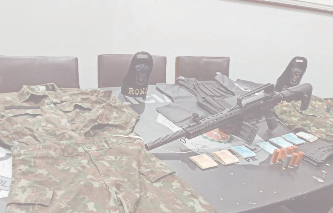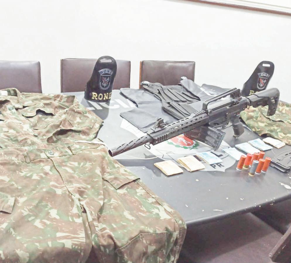 minoso. No local, foram apreendidos uma espingarda, munição, colete balístico, dinheiro, uma farda do exército brasileiro e um aparelho celular.n