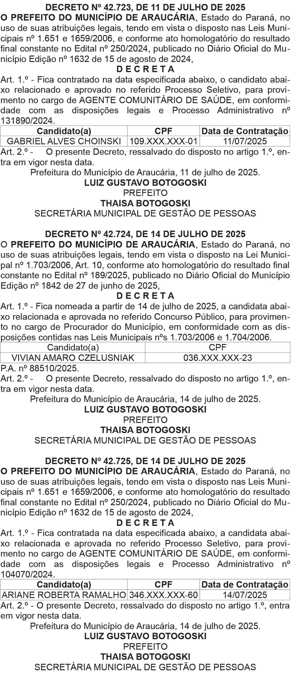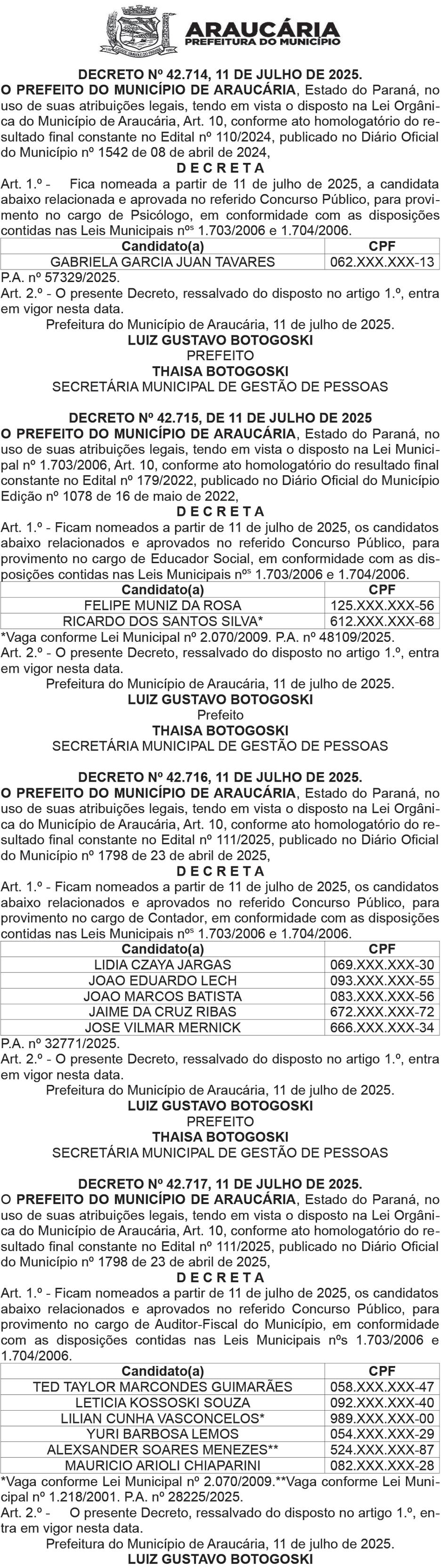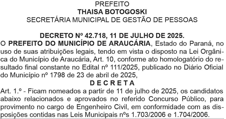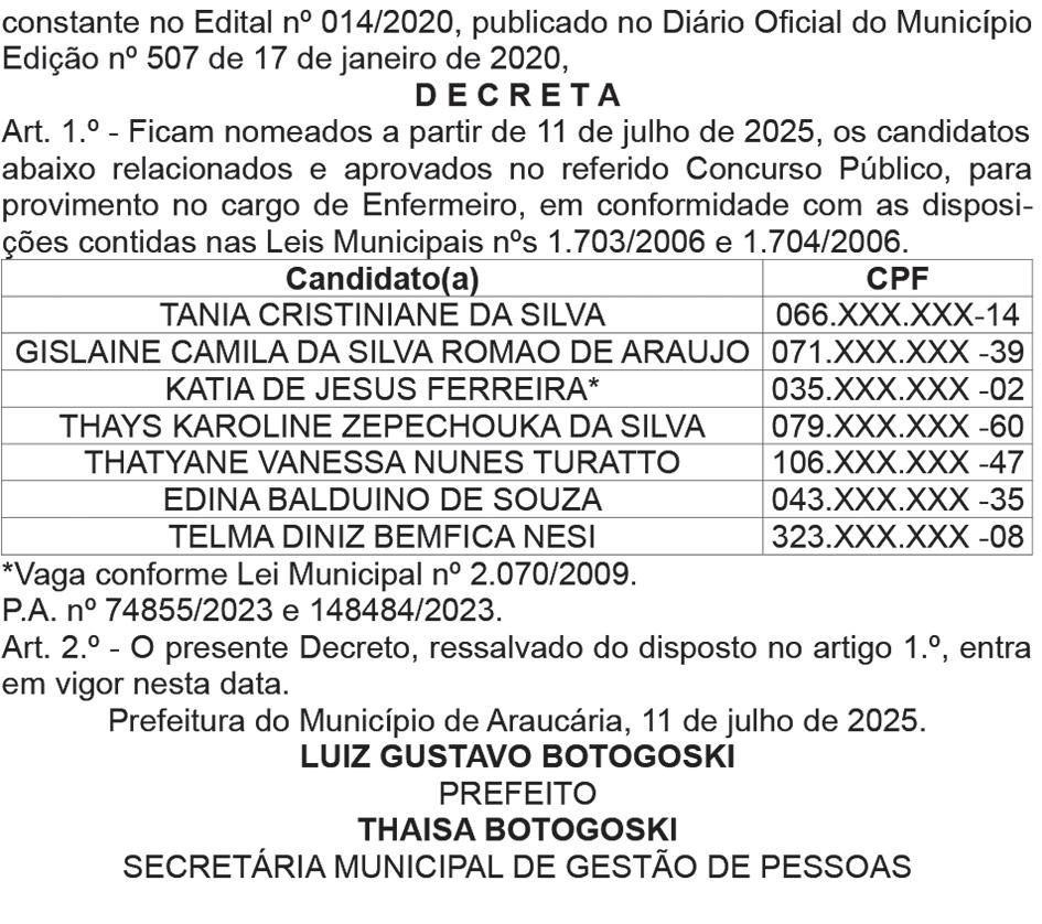 O governador Ratinho Junior assinou a nomeação de mais 604 policiais civis para reforçar o quadro da corporação em todo o Estado. Serão 484 agentes de polícia judiciária, 40 papiloscopistas e 80 delegados. (Página 5)