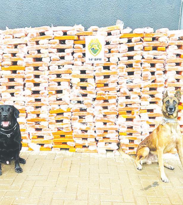 1,2 tonelada de cocaína, e retiradas de circulação 316 armas de fogo. O volume de ilícitos representa um golpe direto de R$ 360 milhões na logística do narcotráfico. n Faro apurado dos cães tornou-se fundamental para a segurança pública do Estado