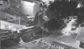 nível da Avenida Paraná com a Rua Flávio Dalegrave, no bairro Cabral, próximo ao terminal do transporte público. A batida aconteceu exatamente em uma das articulações do ônibus, que foi partido ao meio com o impacto.