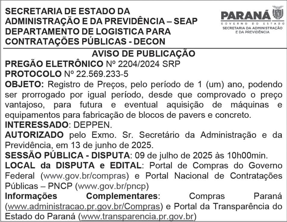 conto de 4,3% em relação ao teto do edital (R$ 45,58 milhões). A concorrência pública segue o critério de menor preço, conforme definido na Concorrência Eletrônica nº 001/2025SMOP/OPP-NDB. O trecho contemplado pelo Lote 2.3 abrange as canaletas exclusivas da Avenida Sete de Setembro, desde a Avenida Marechal Floriano Peixoto até a Rua Mariano Torres, no Centro, e segue pela Avenida Presidente Affonso Camargo até a Rua Zeila Moura dos Santos, no bairro Cristo Rei. n