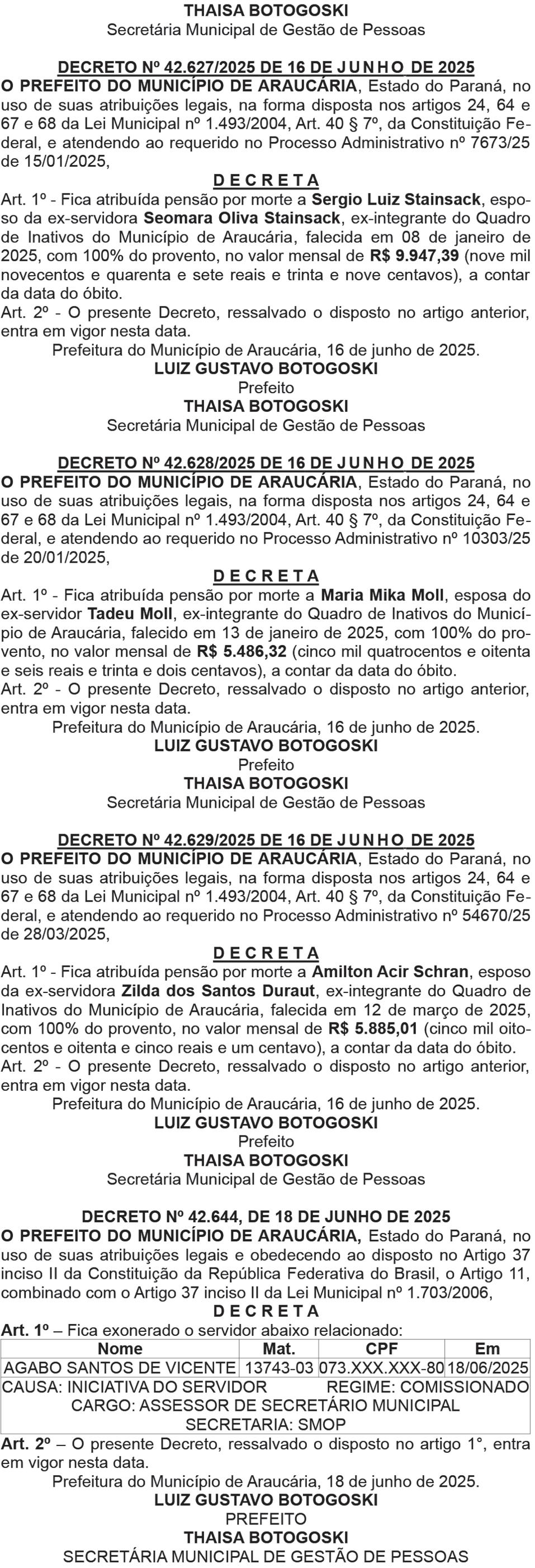 Apucarana, Palmas, Ponta Grossa, Campo Largo, Clevelândia, Arapongas e Pato Branco.