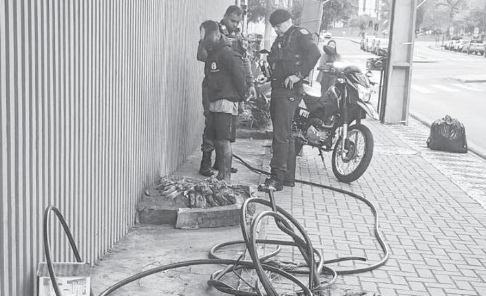Os homens foram flagrados furtando os cabos no bairro do Portão