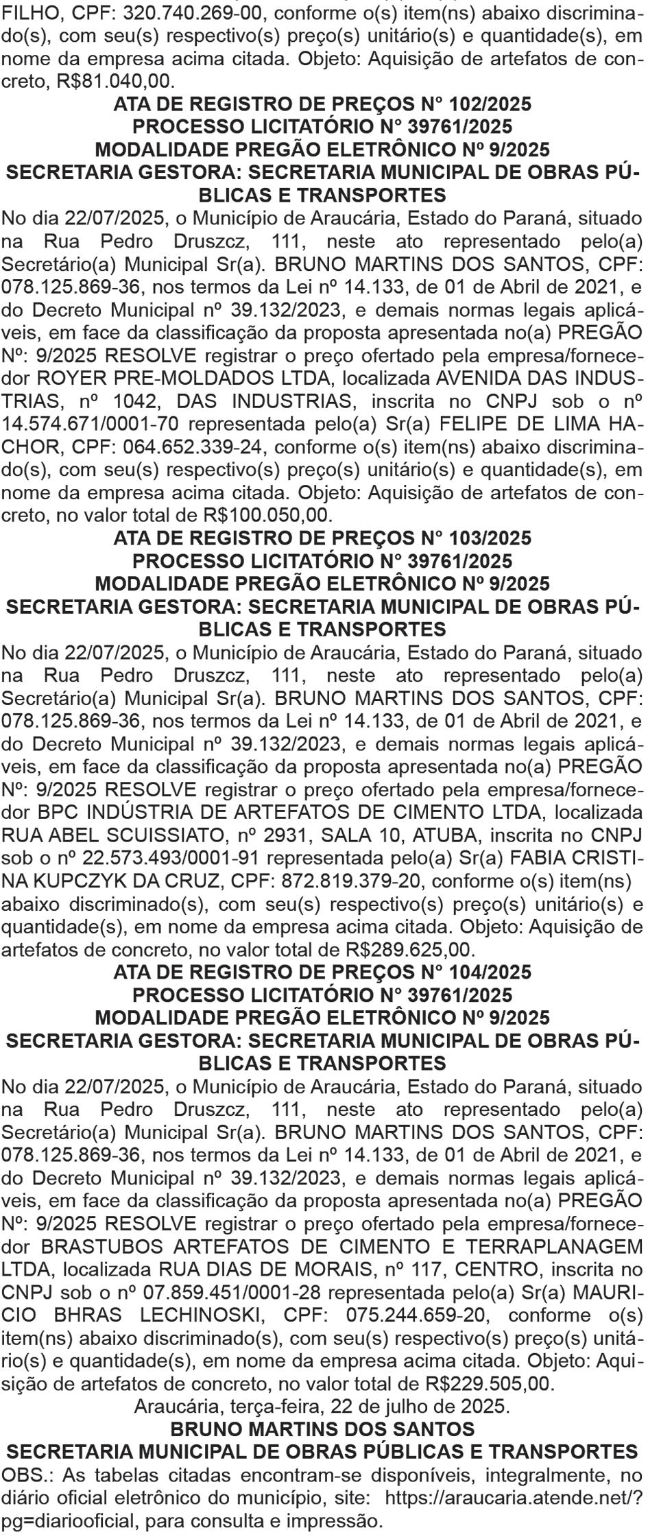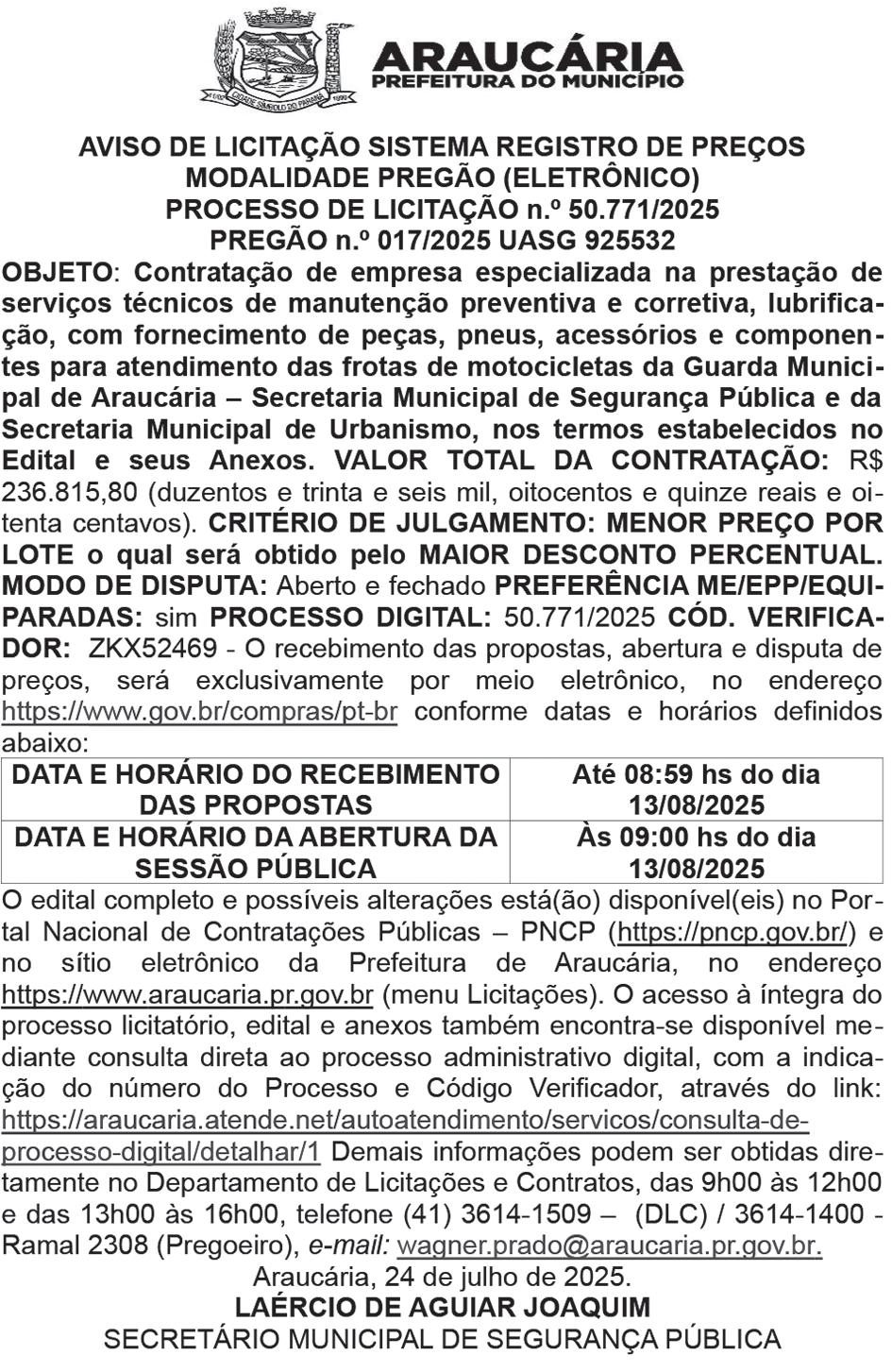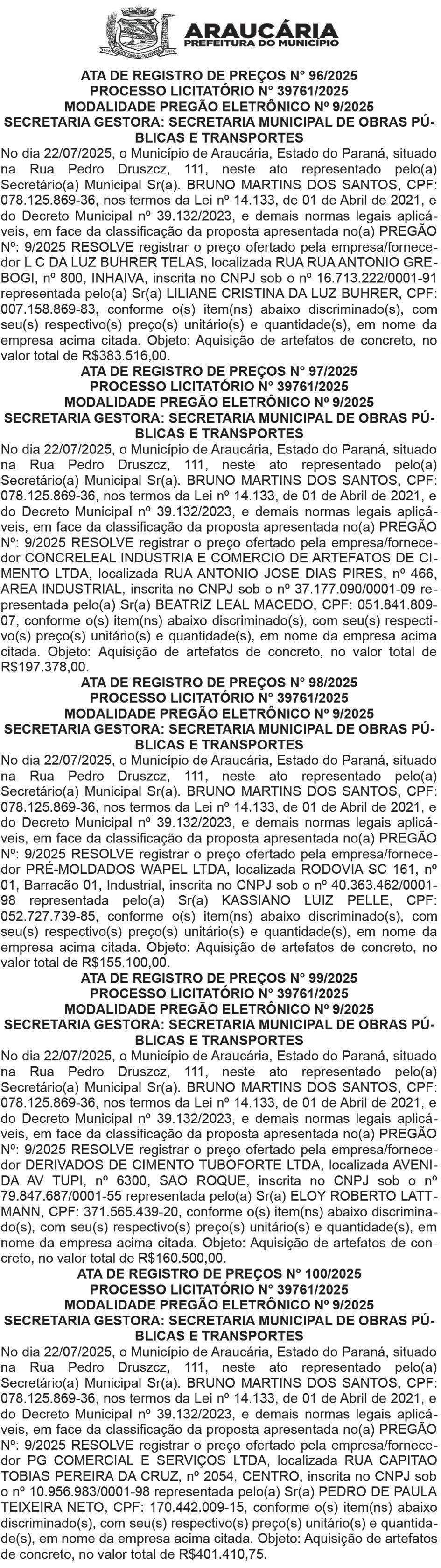 O certame será realizado exclusivamente de forma on-line, no site www. vipleiloes.com.br, a partir das 9h. A disputa segue o critério de maior lance por lote, sob responsabilidade da empresa VIP Gestão e Logística S.A. contratada pela Prefeitura. A visitação dos veículos ocorrerá nos dias 28/7 e 29/7, das 9h às 12h e das 13h30 às 17h, no pátio localizado na Rua Amadeu Assad Yassin, 380 – Bacacheri. O agendamento deve ser feito pelo telefone (11) 3777-8088. Os veículos podem ser examinados apenas visualmente. A participação no leilão é restrita a pessoas jurídicas do ramo de siderurgia ou reciclagem devidamente licenciadas. Os veículos classificados como sucata serão vendidos no estado em que se encontram, sem direito a registro ou licenciamento, e com chassi inutilizado, exclusivamente para reciclagem. n
