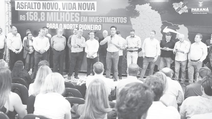 de R$ 72 milhões para 19 municípios da Associação dos Municípios do Norte do Paraná (Amunop) e mais de R$ 158 milhões a 22 cidades da Associação dos Municípios do Norte Pioneiro (Amunorpi). “O Asfalto Novo, Vida Nova é o maior programa de urbanização da América do Sul, acabando com o barro e a lama da frente das casas das pessoas. São investimentos que mudam a cara das cidades, com mais mobilidade, segurança e dignidade para os moradores”, afirmou Guto Silva. n