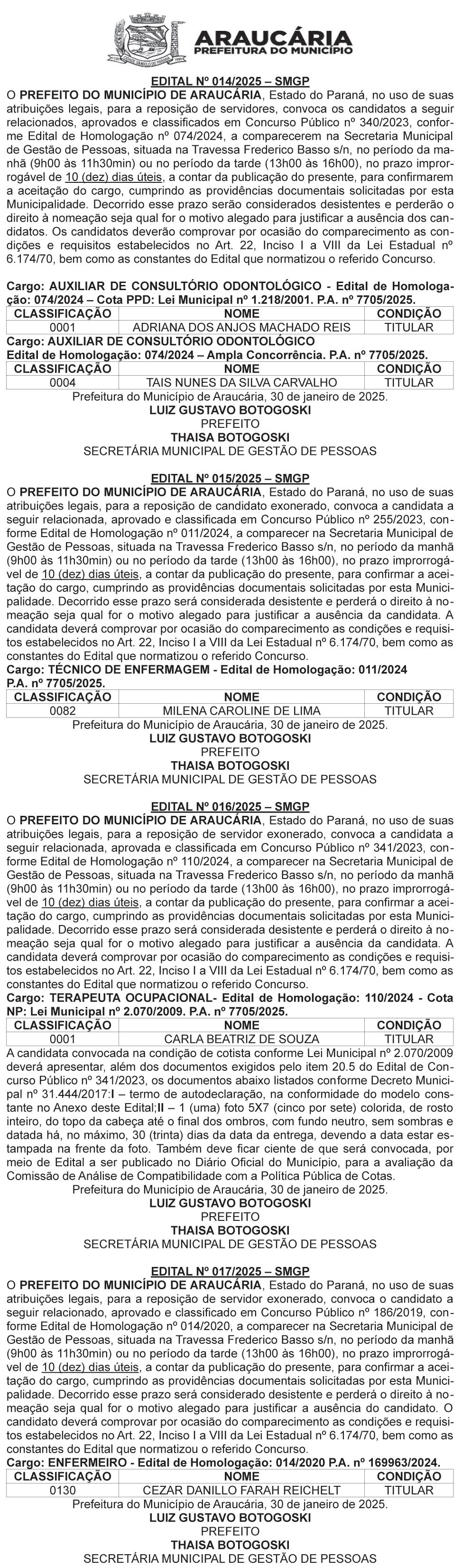 Esta semana também foram convocados para compor o quadro da Secretaria Municipal da Educação 103 professores da Educação Infantil.