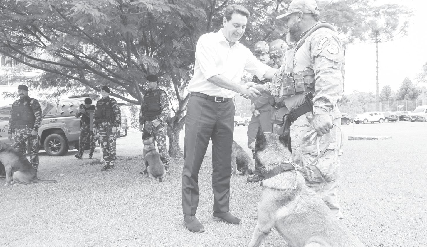valorização das forças de segurança pública, o que passa pelo aumento de 50% no efetivo de cães de faro à disposição dos policiais e bombeiros do Estado”, acrescentou Ratinho Junior.