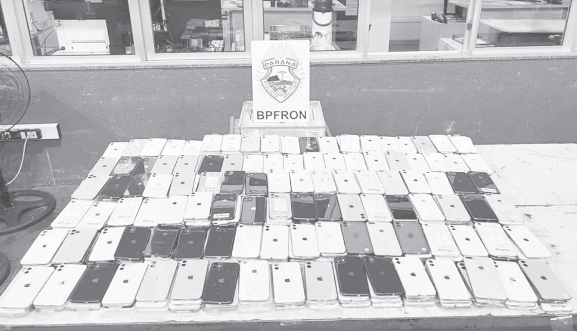 Policiais militares que atuam no Batalhão de Polícia de Fronteira (BPFron) apreenderam 570 celulares de luxo em Foz do Iguaçu, na região Oeste do Paraná. A ocorrência foi registrada no sábado (21), durante ação que integra a Operação Hórus de com -