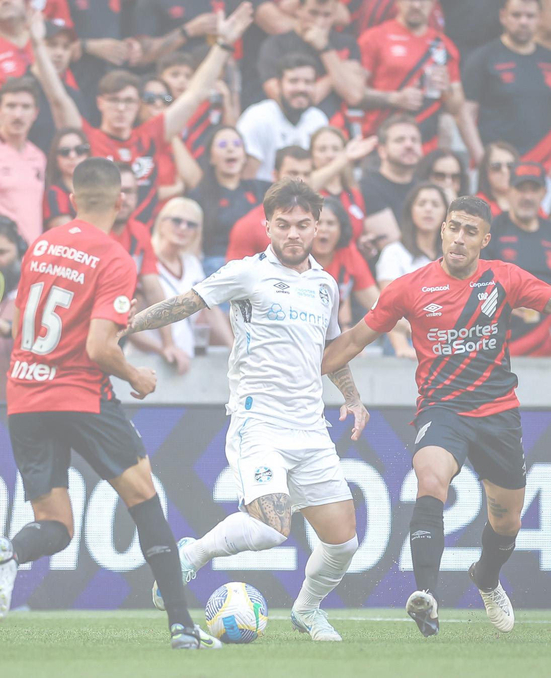 O Athletico fez uma apresentação fraca, ontem, na Arena da Baixada, e perdeu para o Grêmio por 2 x 0. A derrota deixa o Rubro-Negro mais longe do G6, objetivo traçado pela diretoria. (Página 6)