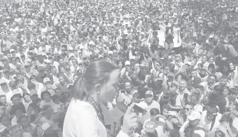 Maria Corina Machado, uma das principais líderes da oposição ao presidente da Venezuela, Nicolás Maduro, discursa para milhares de pessoas durante ato de protesto na capital do país, Caracas. n