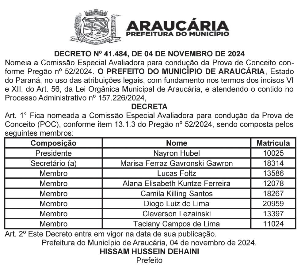 Prefeitura de Araucária divulga três editais de concurso para 44 cargos