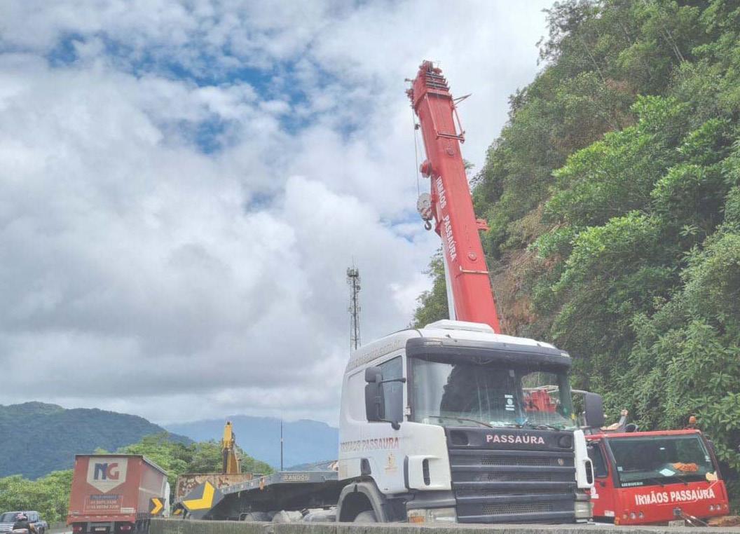 Um guindaste do Departamento de Estradas de Rodagem do Paraná (DER/PR) chegou na manhã de ontem ao km 41 da BR-277, no Litoral, para trabalhos na obra emergencial de contenção do talude danificado. O local foi atingido por um escorregamento de terra no final de novembro passado.