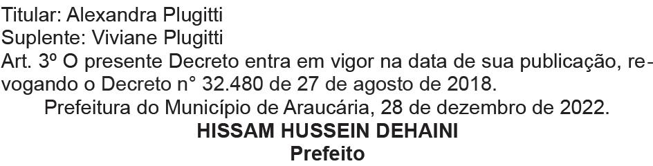 Continuação Decreto nº 38.856 Curitiba, quinta-feira, 12 de Janeiro de 2023 - edição 4.038 DE CURITIBA