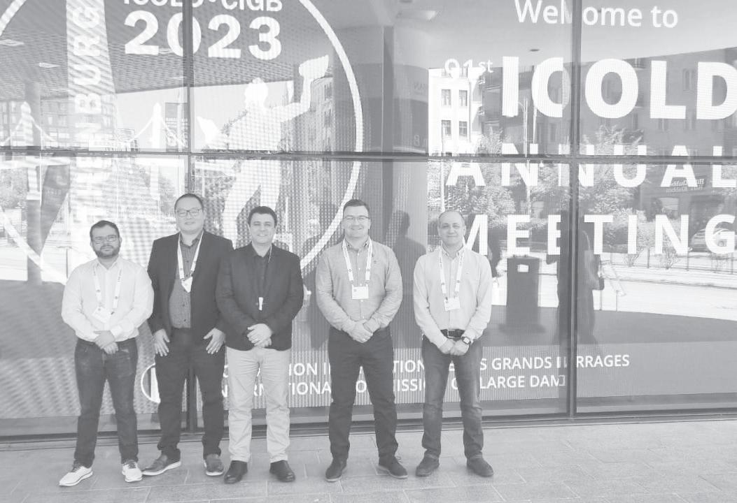 Étore Funchal de Faria e Luis Vellacich, da Superintendência de Obras; Cláudio Osako e Milton Gayoso, da Superintendência de Engenharia; e Anderson Braga Mendes, da Diretoria de Coordenação. No evento, Étore, que é pós-doutor em Estruturas e Materiais com ênfase em Segurança de Barragens pela Arizona State University (EUA), apresentou um trabalho sobre a experiência de Itaipu no monitoramento das estruturas civis. Na ocasião, Étore foi convidado a assumir a coordenação do Comitê Técnico Q da ICOLD, que trata de Monitoramento de Barragens. n