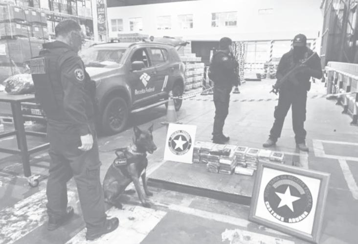 A Receita Federal apreendeu, na noite de quarta-feira (14), 56,5 kg de cocaína no Terminal de Contêineres de Paranaguá, no Litoral do Paraná. Os tabletes de cocaína foram encontrados em um contêiner com compensados de madeira, que iria para a França. A análise de imagens de escâner detectou a droga e uma cadela de faro da Receita Federal confirmou a suspeita.