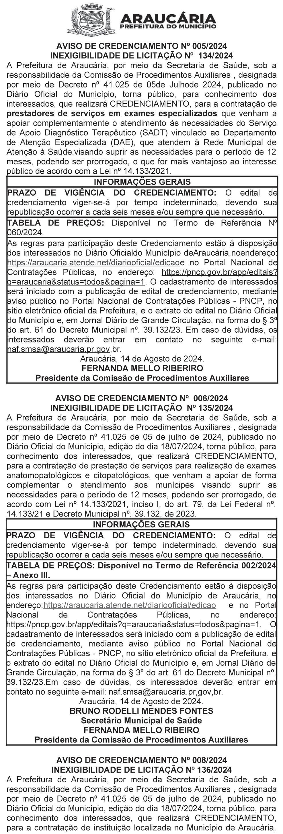 Continuação: Aviso de Credenciamento nº 008/2024