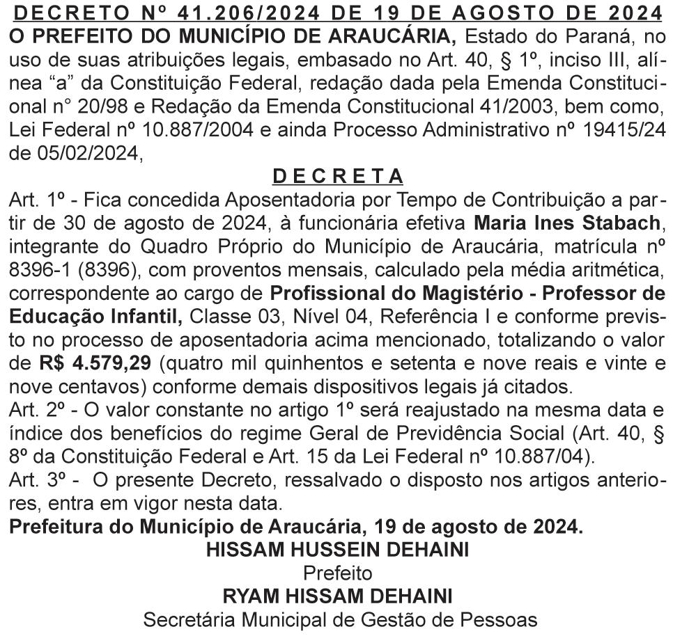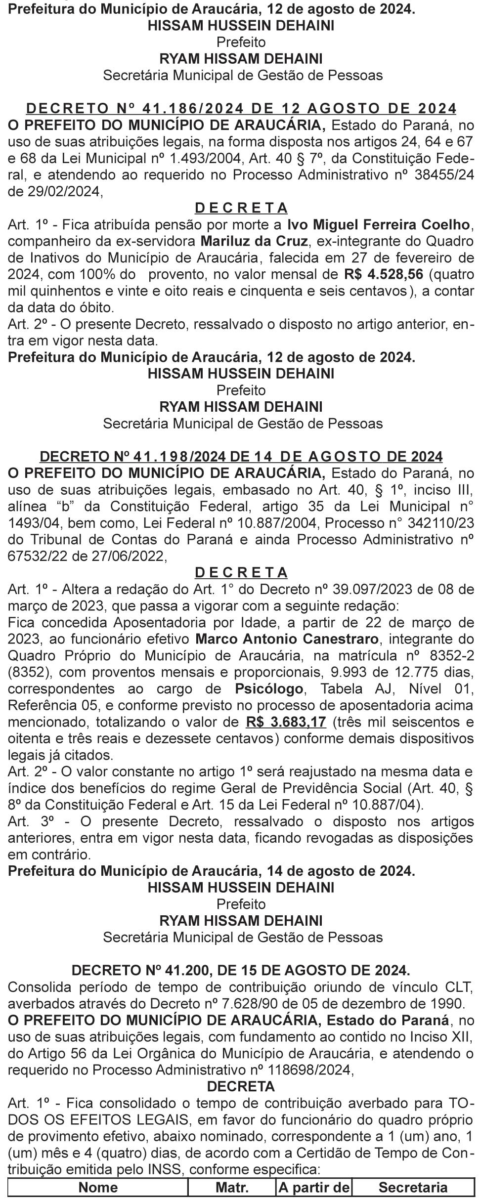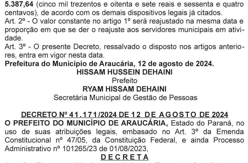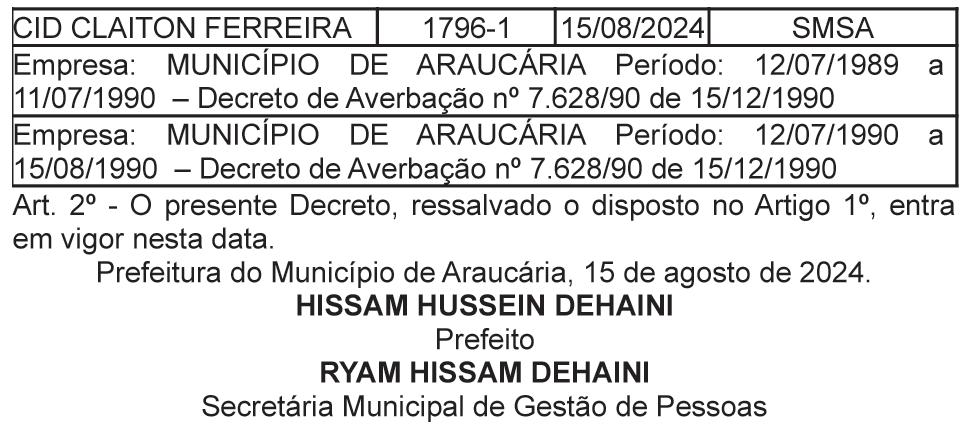 Publicação de editais, atas e balanços? Entre em contato no tel.: (41) 3263-2002 Continuação: Decreto nº 41.171