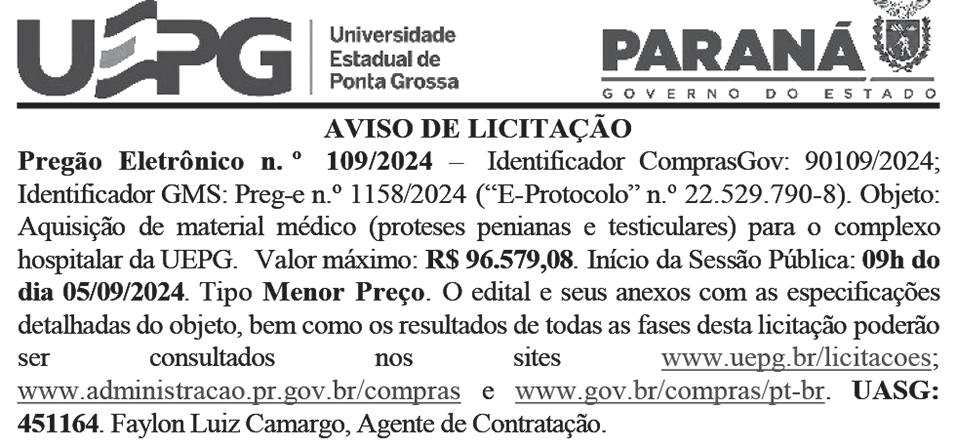 A Assembleia Legislativa do Paraná promove no próximo dia 8 de outubro uma audiência pública para debater o projeto de lei 542/2024, que trata da reestruturação da carreira militar estadual, assinado pelo Poder Executivo. O debate será promovido pelos deputados Tito Barichello (União), líder do Bloco de Segurança Pública da Casa, e Delegado Jacovós (PL), e ocorrerá às 10 horas no Plenarinho.