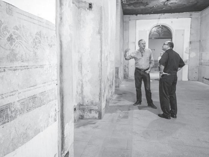 Acompanhado da equipe de engenheiros, arquitetos e restauradores, Greca percorreu as instalações sempre fazendo citações sobre as diversas fases do local. n