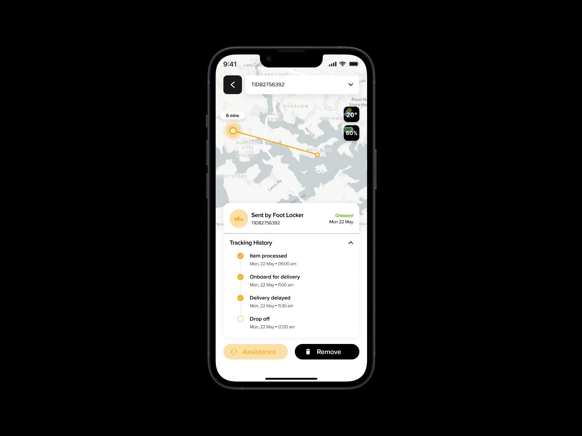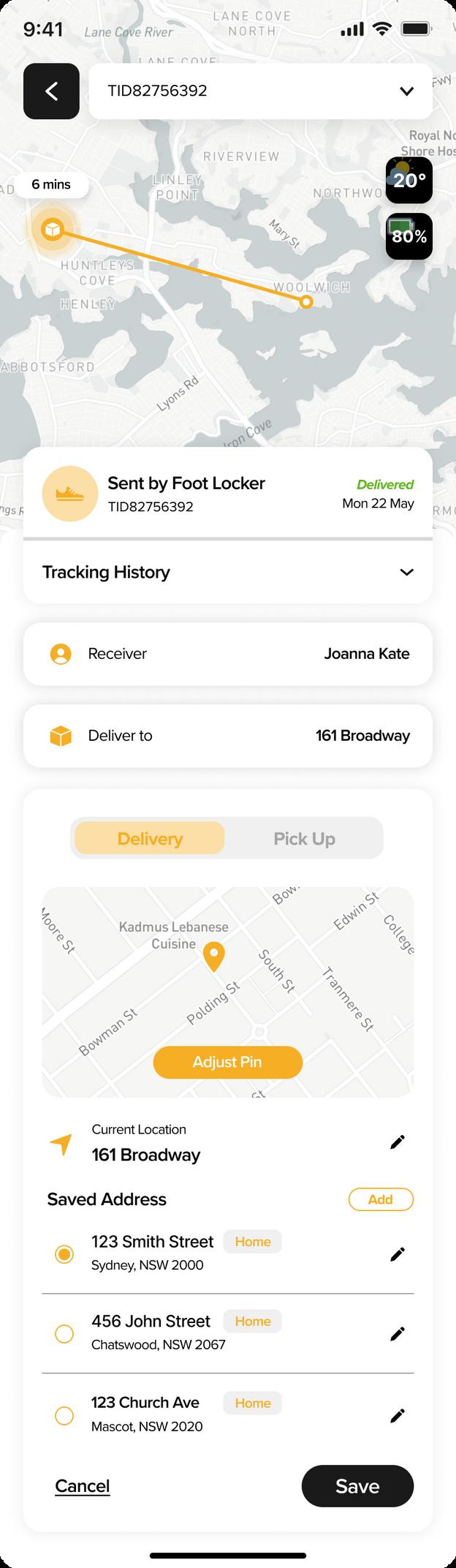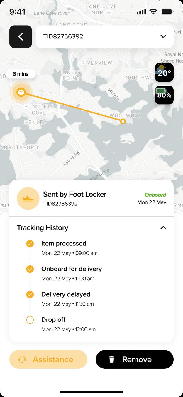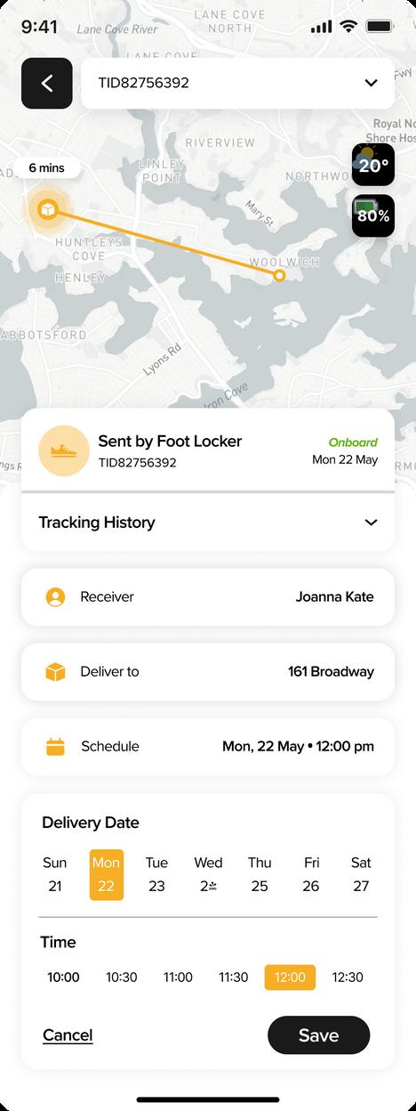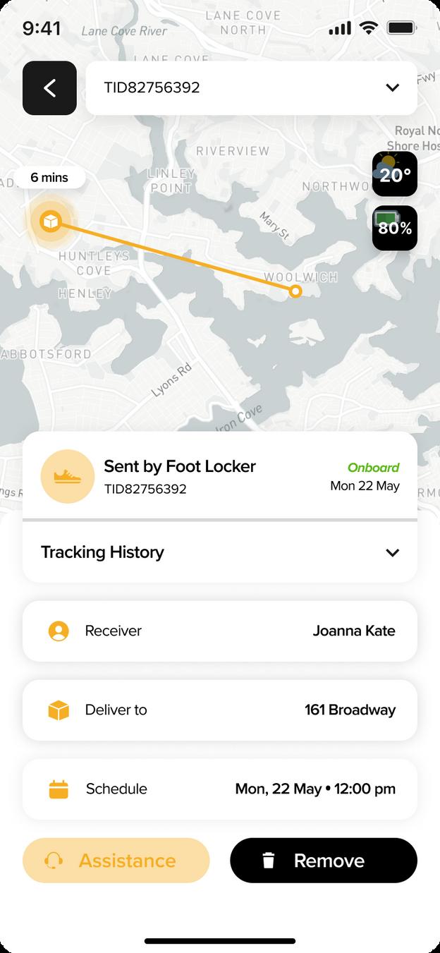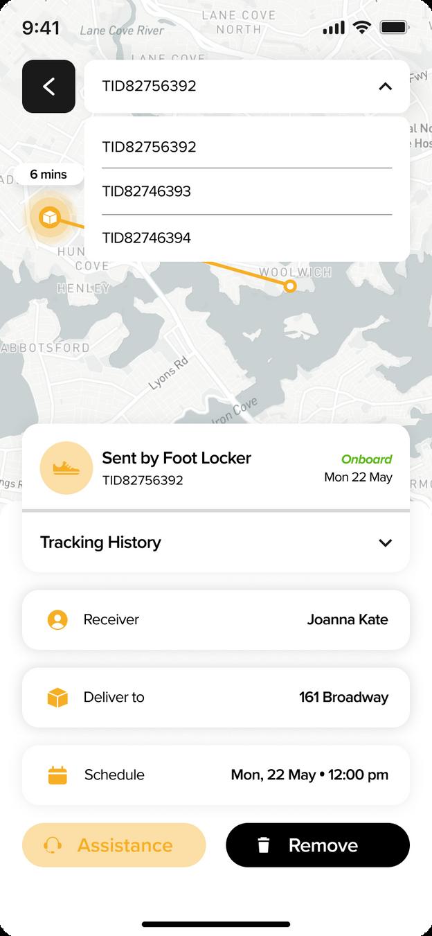 A designated area where users cou d v ew the de ivery's current status d stance and how ong t s going to arrive