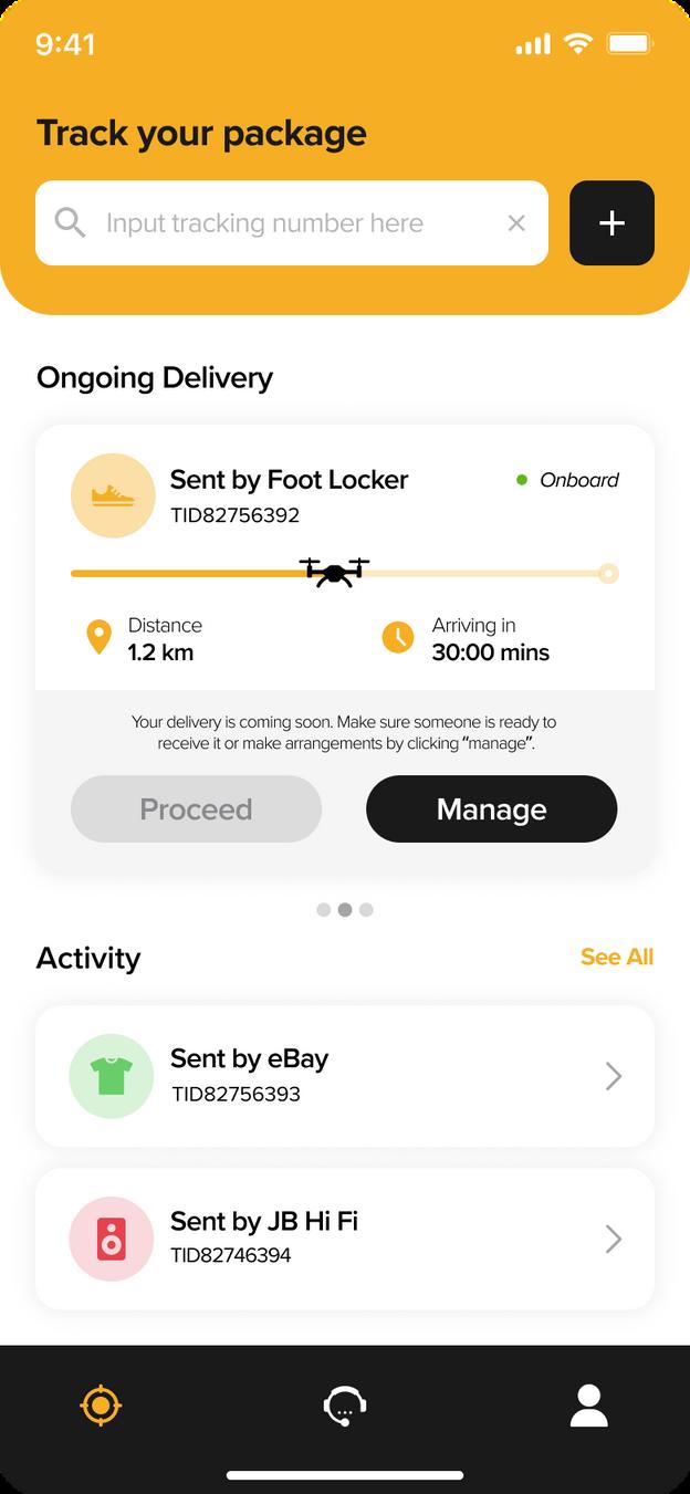 When drone is near to the del very address, users wi l get a notif cat on asking confirmation and the "proceed" button w l be c ickab e Once its cl cked del very w ll be processed