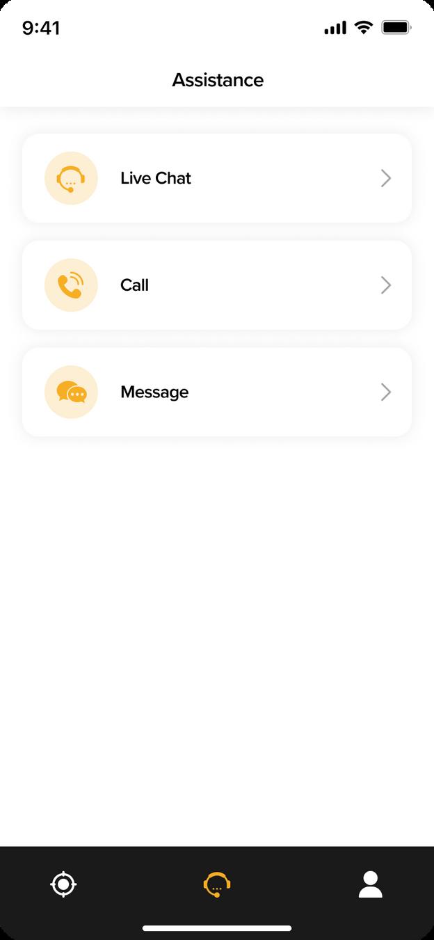 Assistance button that navigates to the customer assisting page.