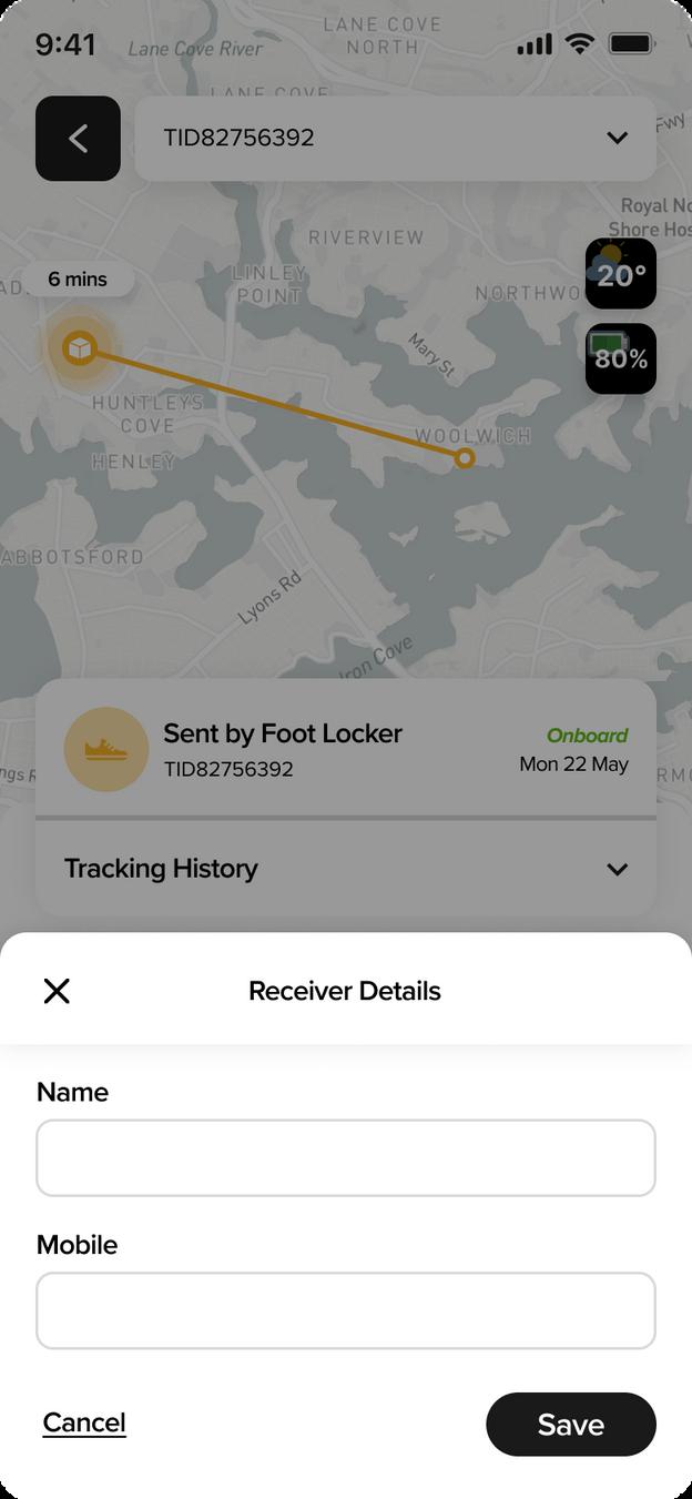 What the users need to do the first time they open the app, a co umn for users to wr te down tracking number Once t's added it wil shown it s current status underneath