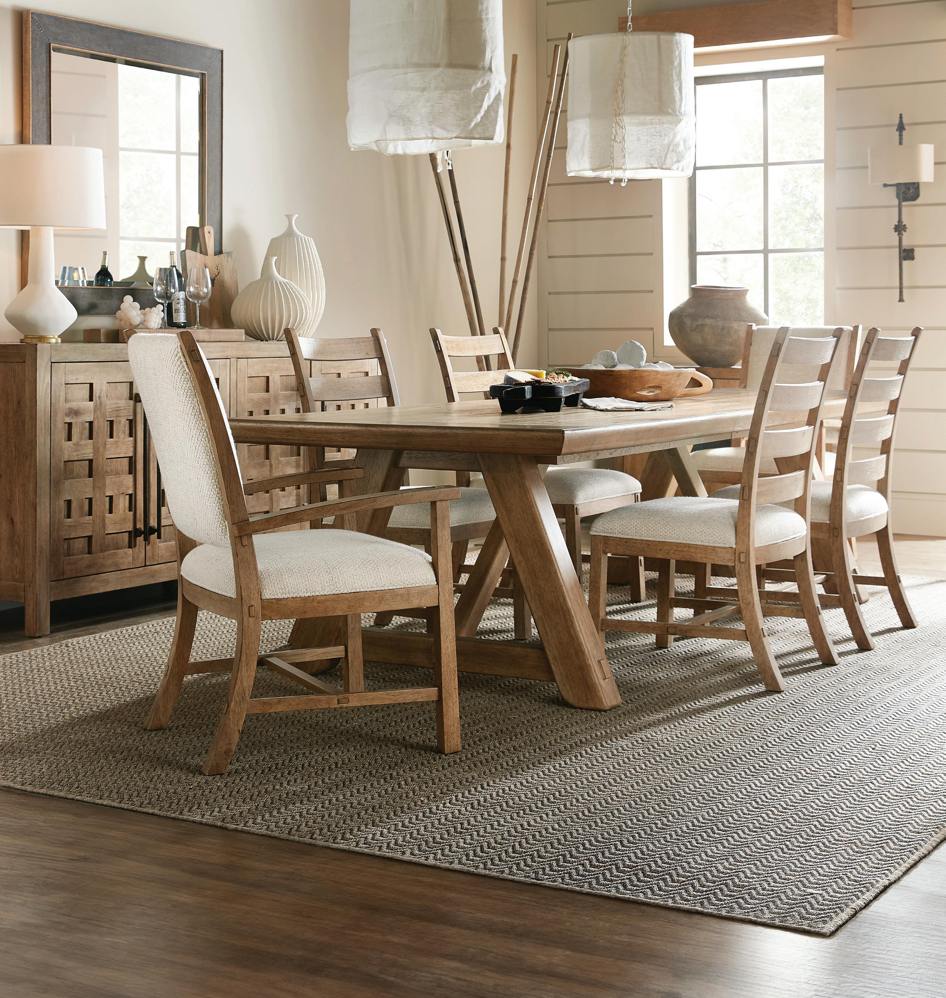 Crafted with pecky hickory veneers, its Sonoma finish exudes a light, airy quality. Influenced by Spanish missions, this collection is a blend of rustic charm with sophisticated design, featuring exquisite details like hammered metal hardware and seeded glass for discerning buyers. Available exclusively at Fashion Furniture.