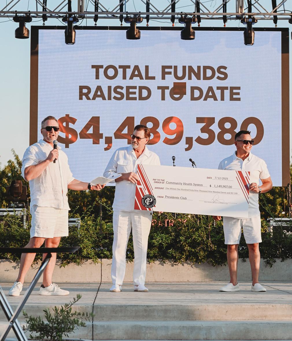 Presidents Club’s signature event, White Hot Summer Night, returned to Evanelle Vineyards for another white-hot year on Saturday, July 12th. More than 600 guests raised nearly $650,000 for cancer care while enjoying fine food, live music, dancing, and an exciting auction. During the event, President Mike Gonzales presented Community’s CEO & President, Craig Wagoner, with a check for their annual fundraising total, which surpassed $1,000,000.