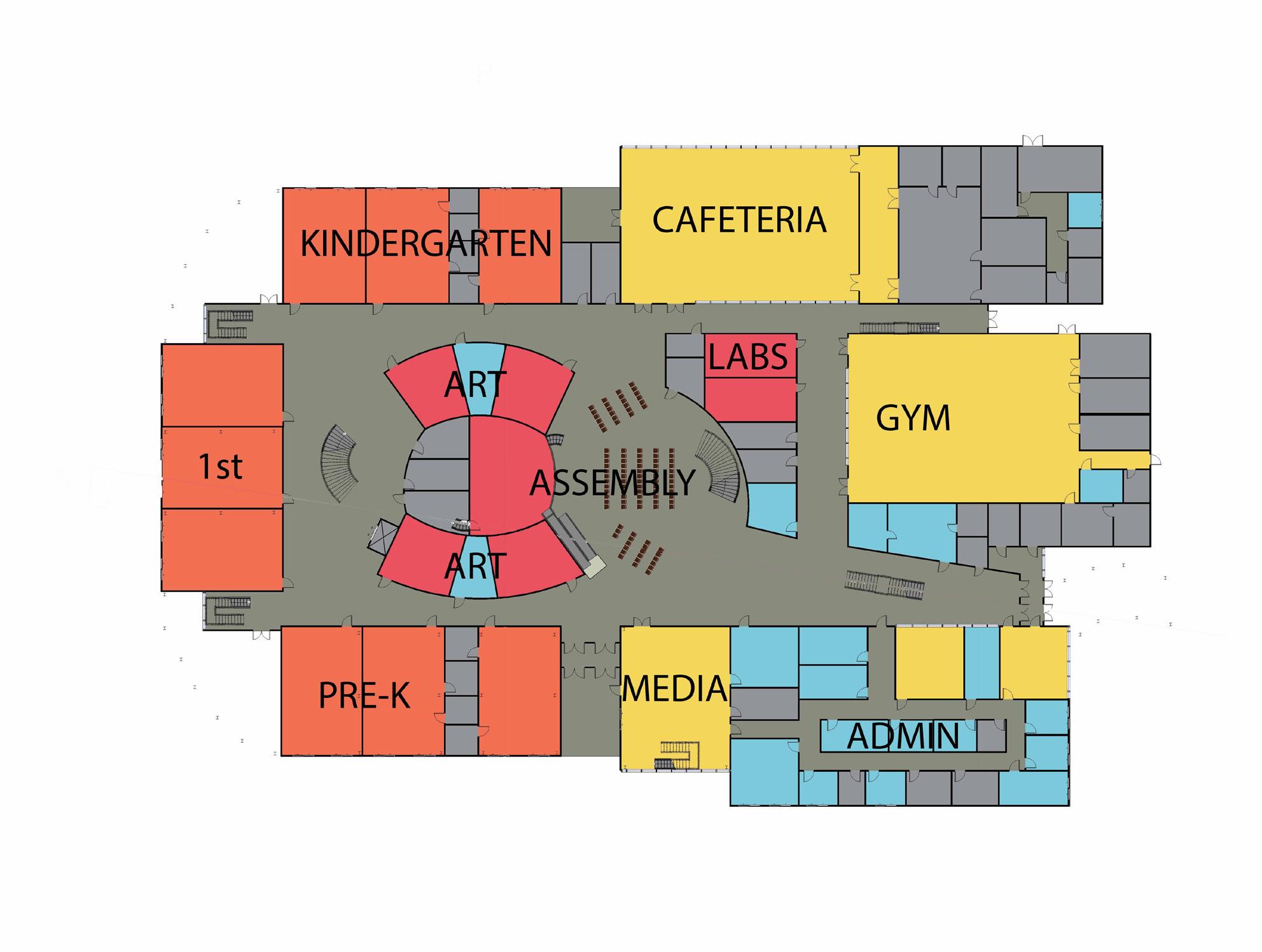 Catalyst Elementary reconceptualizes grade school education into an interactive learning process based in the STEAM subjects. The site is based in Arlington, TX. The building is a mix of traditional forms while integrating organic shapes that mimic the nature of biological cell organelles. Namely, the nucleus is the core of the space that invites students, staff, and visitors to collaborate and celebrate their achievements within art and technology projects.