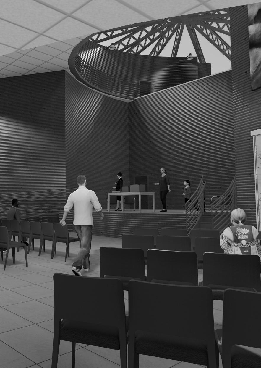 Unity Oasis College of Inclusion is a mixed-use project blending higher education and public commercial spaces into one distinct experience. Focusing on the prediction of society in the year 2050, the building is designed to promote sustainability through concepts of co-habitation with other species and regenerative decarbonization. The site is based in the Golden Bay of San Francisco, California.