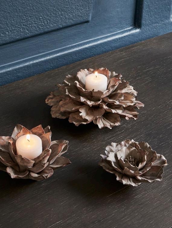 Create a blooming haven with our ceramic candleholders and ornaments. Crafted with delicate precision, each piece is sculpted into stunning flower forms in earthy tones, infusing your surroundings with nature’s elegance. Illuminate your evenings with the soft glow of candlelight dancing through carefully designed petals.